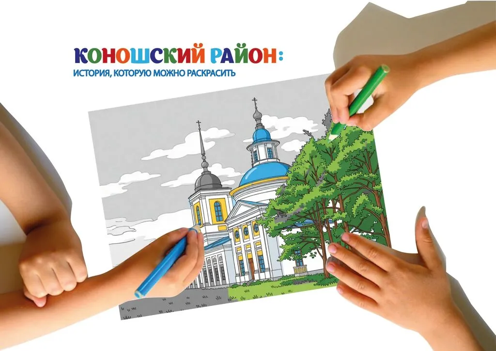 В Коношском районе появились раскраски с местными достопримечательностями. Это первое краеведческое издание, целевой аудиторией которого стали учащиеся начальных классов, и первое издание в подобном формате.